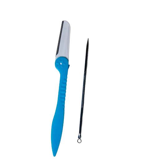 • This 2in1set has blackhead remover and brow razor that can be used to trim brow hairs