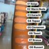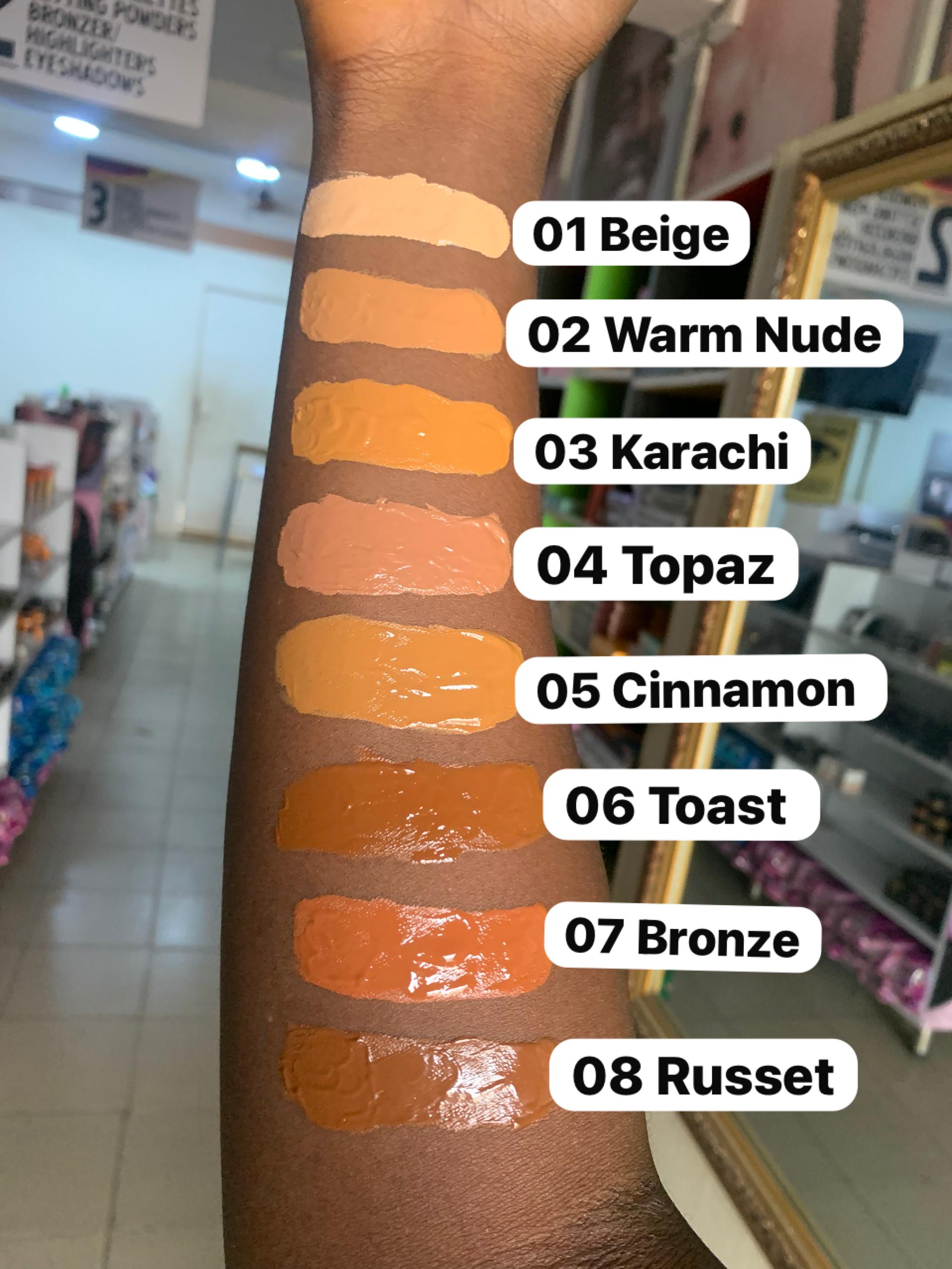 | Color | 01 Beige, 02 Warm Nude, 03 Karachi, 04 Topaz, 05 Cinnamon, 06 Toast, 07 Bronze, 08 Russet, 09 Hazlenut, 10 Coffee |