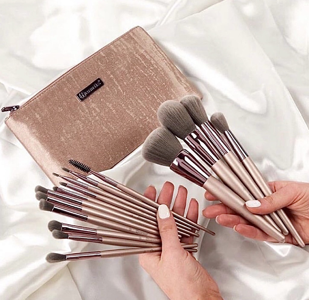 - The brushes in this set are used to apply powder and cream products